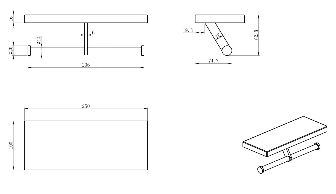Держатель туалетной бумаги Wonzon & Woghand WW-V3802-CR двойной, с полкой, хром