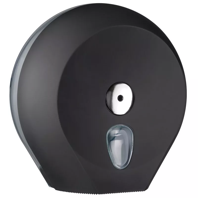 Диспенсер для туалетной бумаги круглый из пластика чёрный. Оборудован антивандальным замком и окошком для контроля наличия туалетной бумаги. Для рулонов 250 м. В отличие от аналогичной модели 05005.С совместно с этим диспенсером невозможно использовать туалетную бумагу в маленьких рулонов, длиной 50-60 метров. В комплекте с держателем вы найдете ключ, который подходит ко всем устройствам Nofer серии Black, а также монтажный набор для установки на стену. Корпус оборудования сделан из специального вида пластика ABS черного цвета. Помимо этого, пластик очень приятен на ощупь и обладает необычным матовым оттенком. Гарантия на Nofer 05010 составляет 2 года!