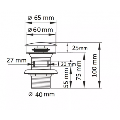 Донный клапан для раковины CeramaLux RD 003 хром, с переливом