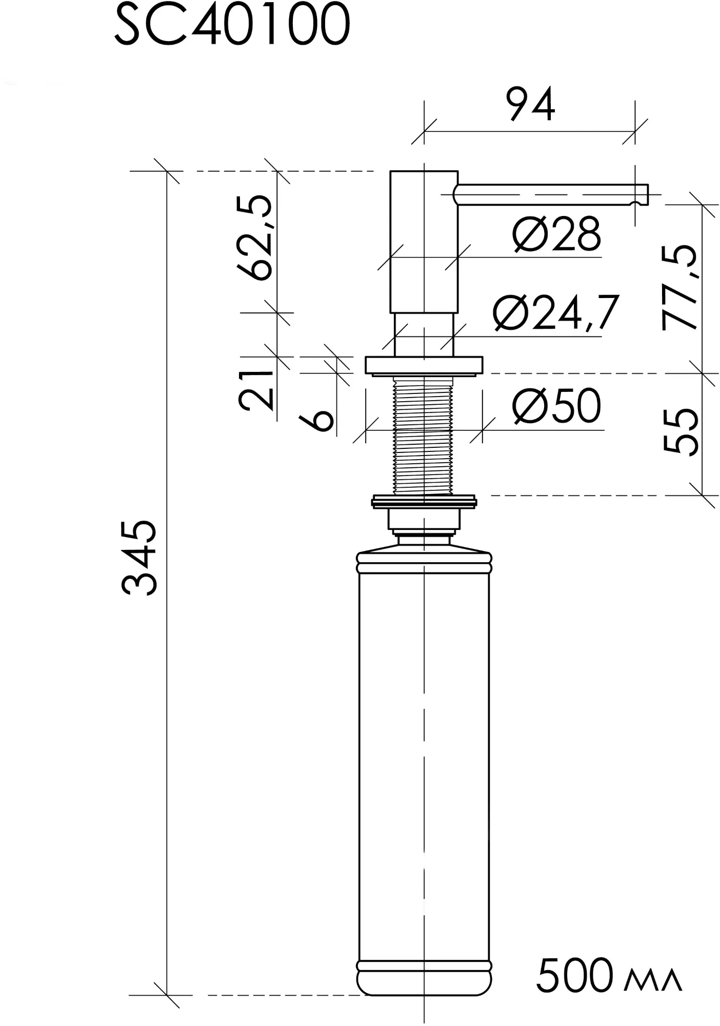 - Объём ёмкости 500 мл;