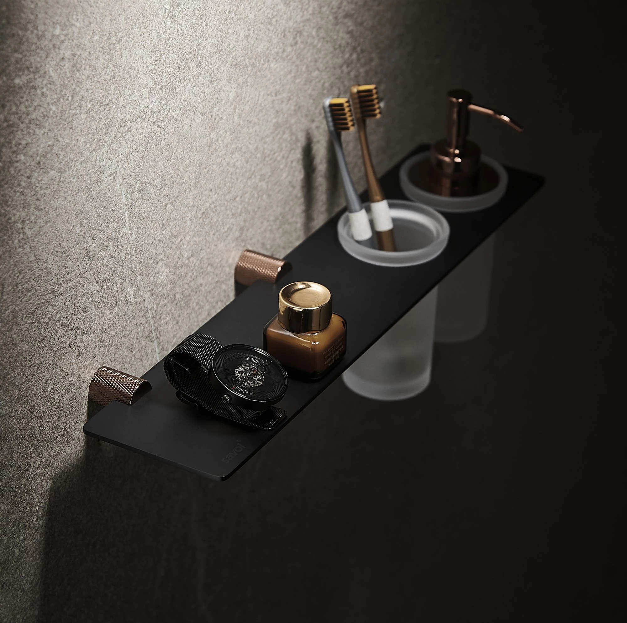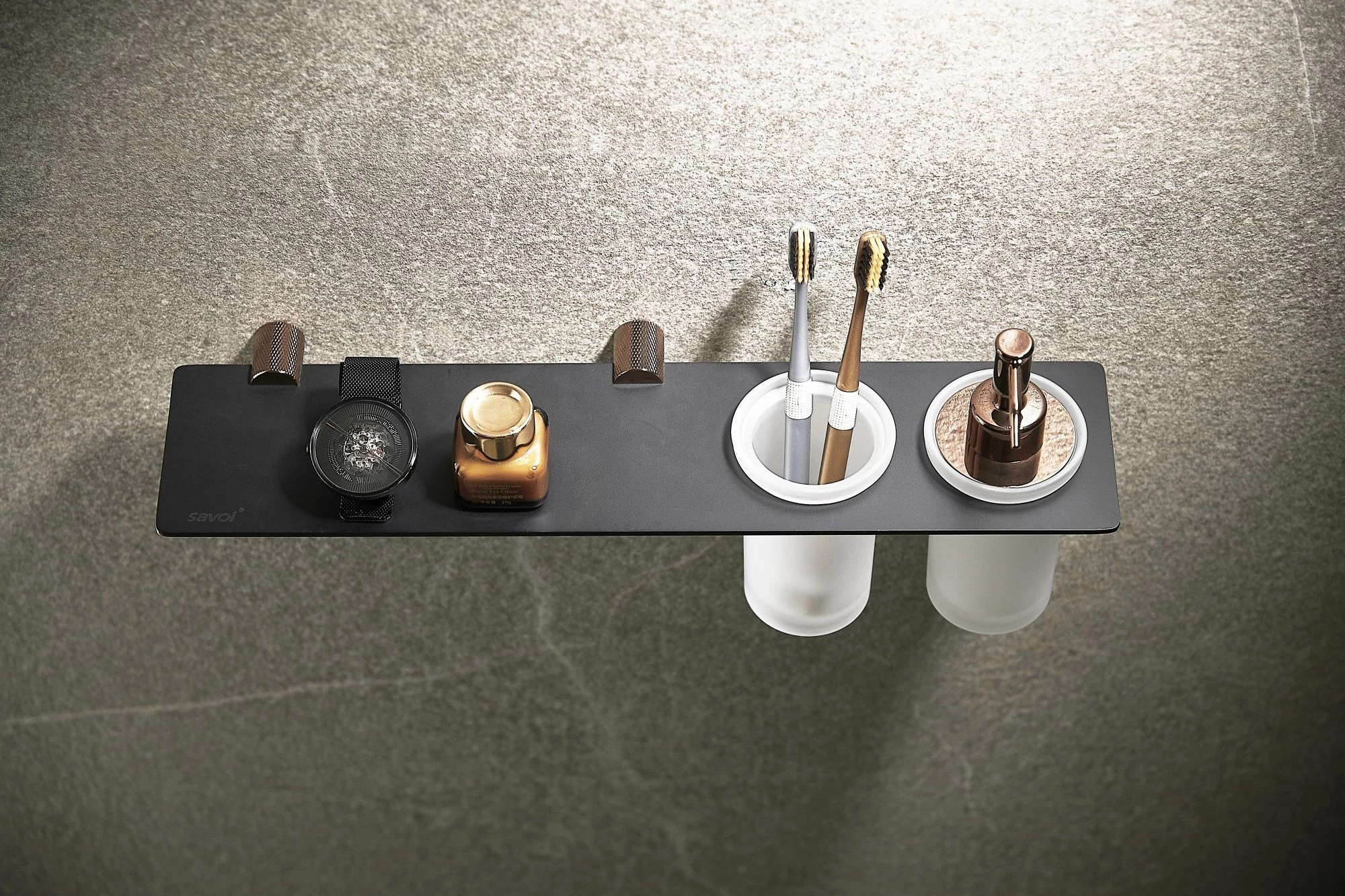 Дозатор для жидкого мыла Savol серия 21hd S-002169HD с настенным держателем, стаканом, розовое золото/ черный