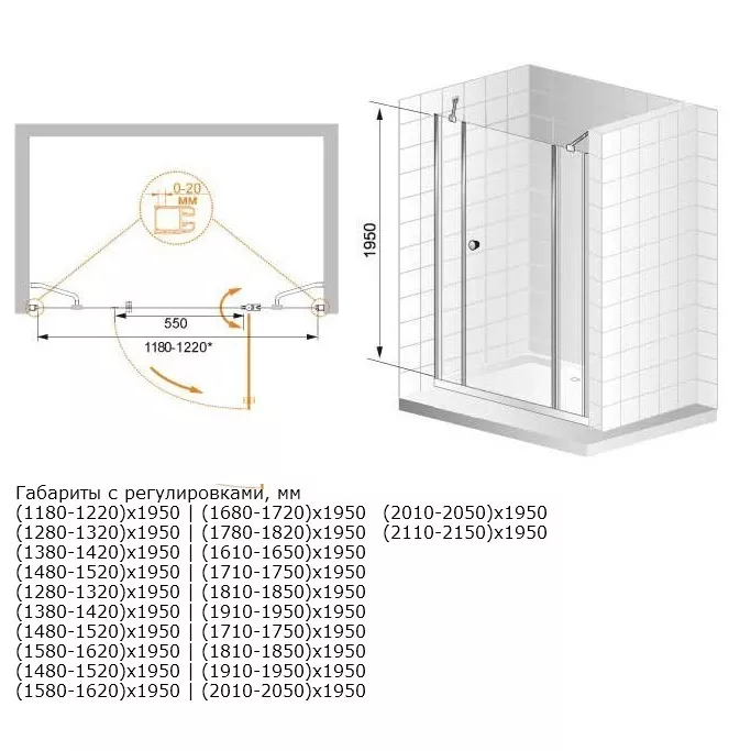 Душевая дверь Cezares Elena B13 200 см 100+60/40 прозрачное стекло