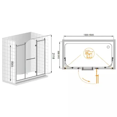 Душевая дверь Cezares Magic B13 140 см 40+60/40 левая прозрачное стекло бронза