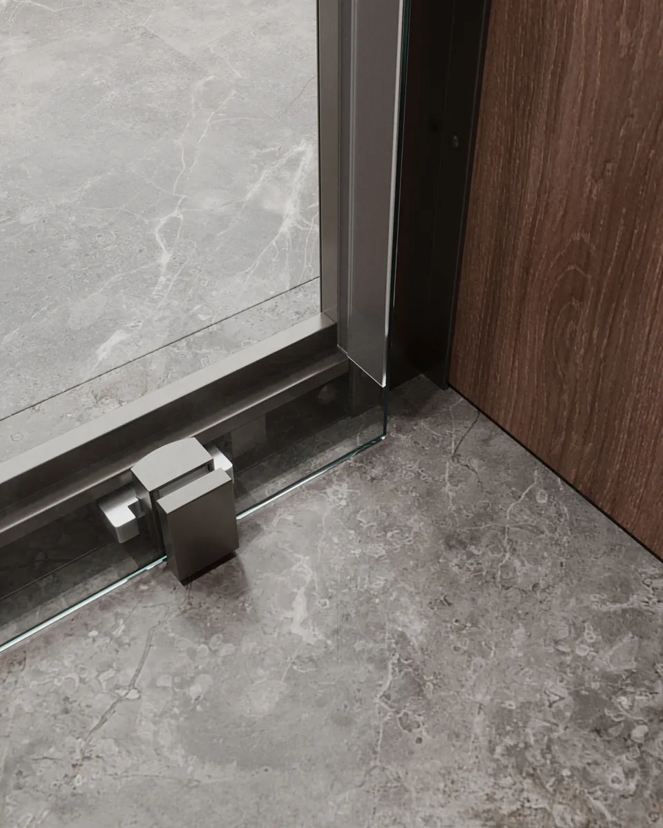 - Материал полотна двери: закаленное стекло.