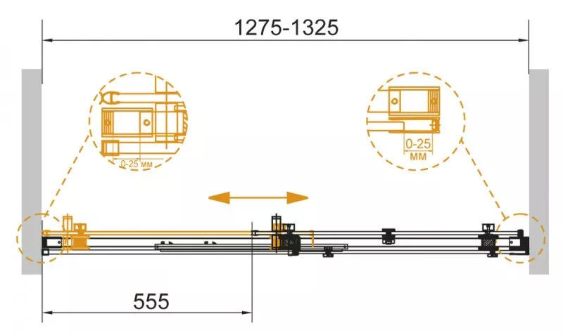 Регулировка ширины: предусмотрена за счет боковых профилей