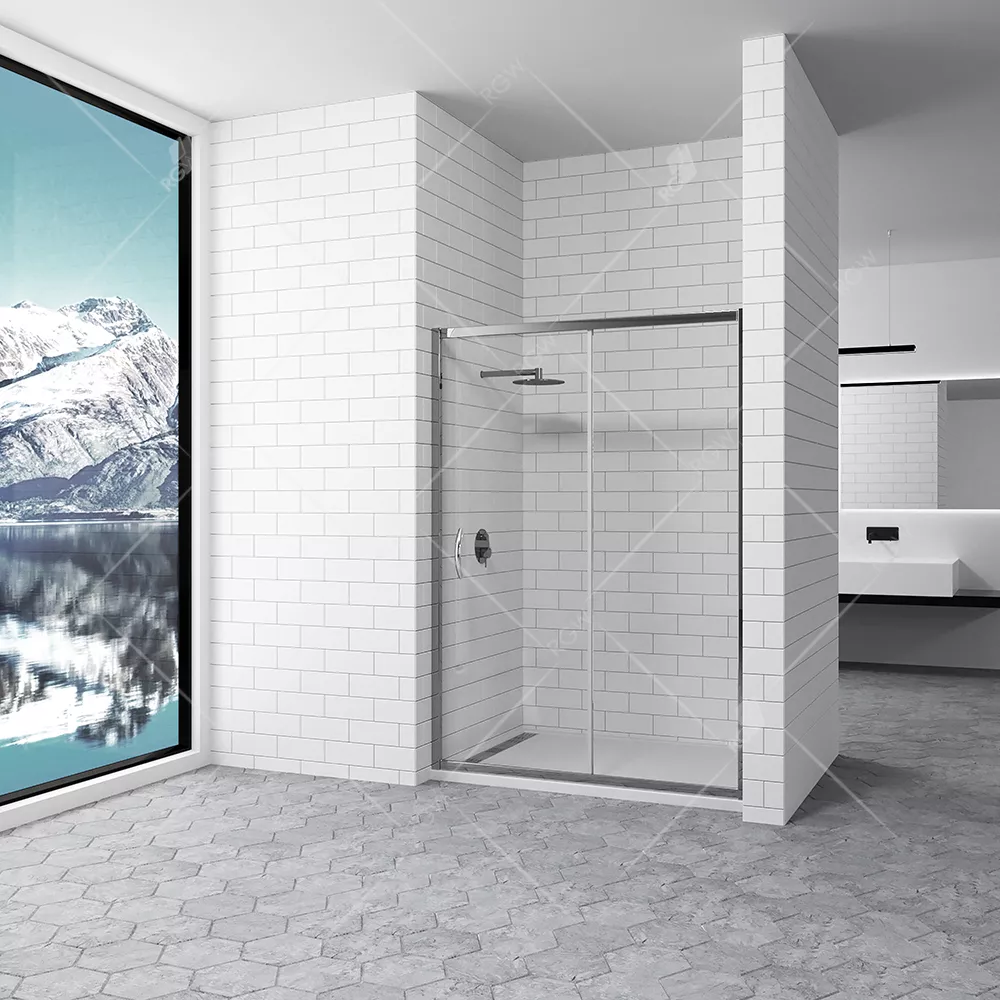 - Душевая дверь состоит из 2-х секций, одно неподвижное стекло и раздвижная дверь от стены