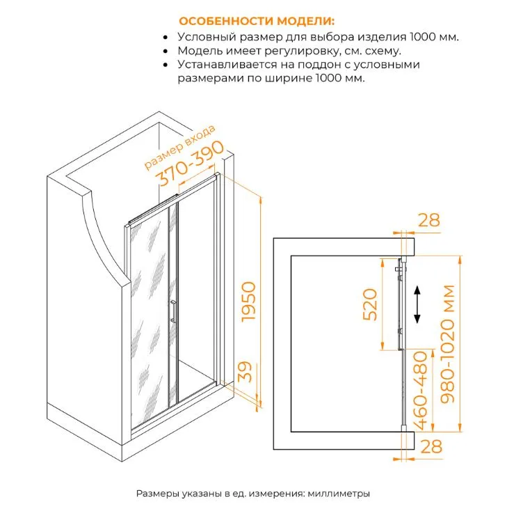 - Исполнение полотна двери: прозрачное закаленное стекло, толщиной 6 мм.