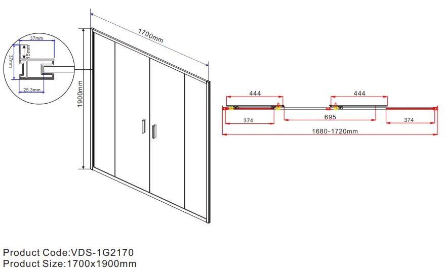 Душевая дверь Vincea Garda VDS-1G2170CLG 170x190 см, профиль брашированное золото/стекло прозрачное