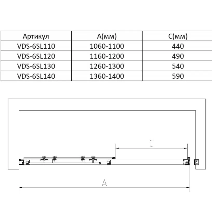 Душевая дверь Vincea Slim 8mm VDS-6SL140CLB 140x195 см, профиль чёрный/стекло прозрачное