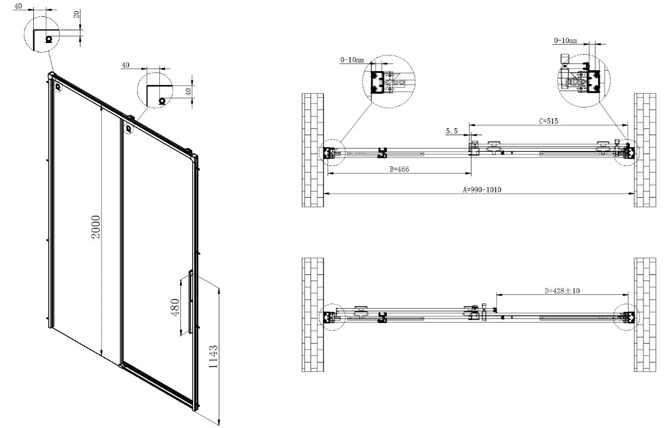 Душевая дверь Vincea Ultima VDS-7UL100CLGM 100x200 см, профиль вороненая сталь/стекло прозрачное