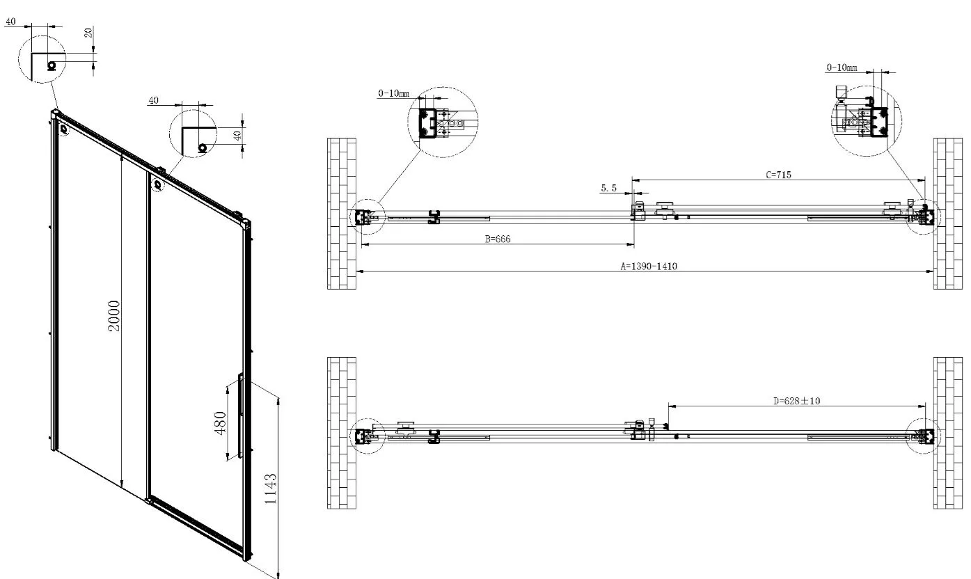 Душевая дверь Vincea Ultima VDS-7UL140CLGM 140x200 см, профиль вороненая сталь/стекло прозрачное