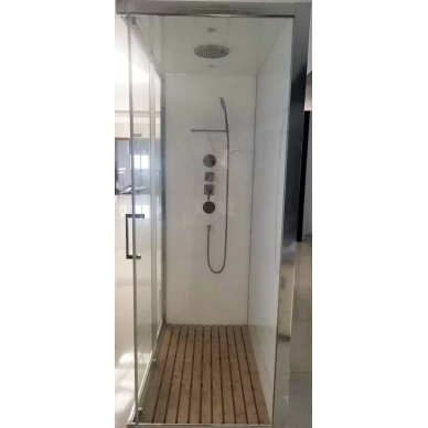 - Акриловый поддон высотой 15 см, усиленный металлическим каркасом, выдерживающий нагрузку до 300 кг