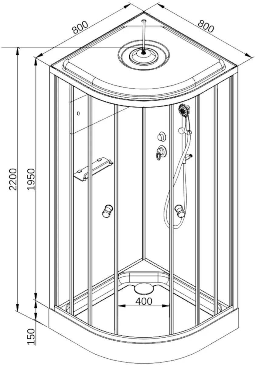 Душевая кабина DTO D D08SLED 80x80x220 см, с электрикой и LED подсветкой