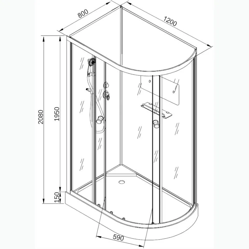 Душевая кабина DTO D D102L 120x80x208 см, левая, без крыши