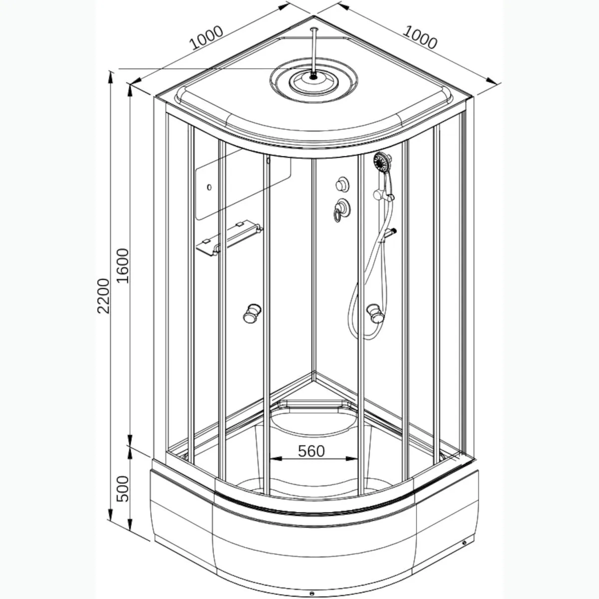Душевая кабина DTO D D10SEL 100x100x220 см, с электрикой