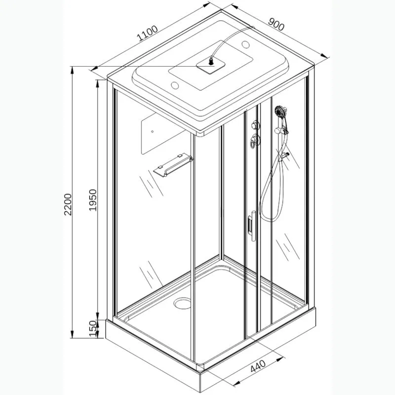 Душевая кабина DTO D D119SLED 110x90x220 см, с электрикой и LED подсветкой