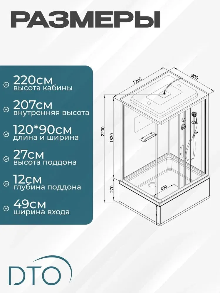 Душевая кабина DTO D D229SEL 120x90x220 см, с электрикой