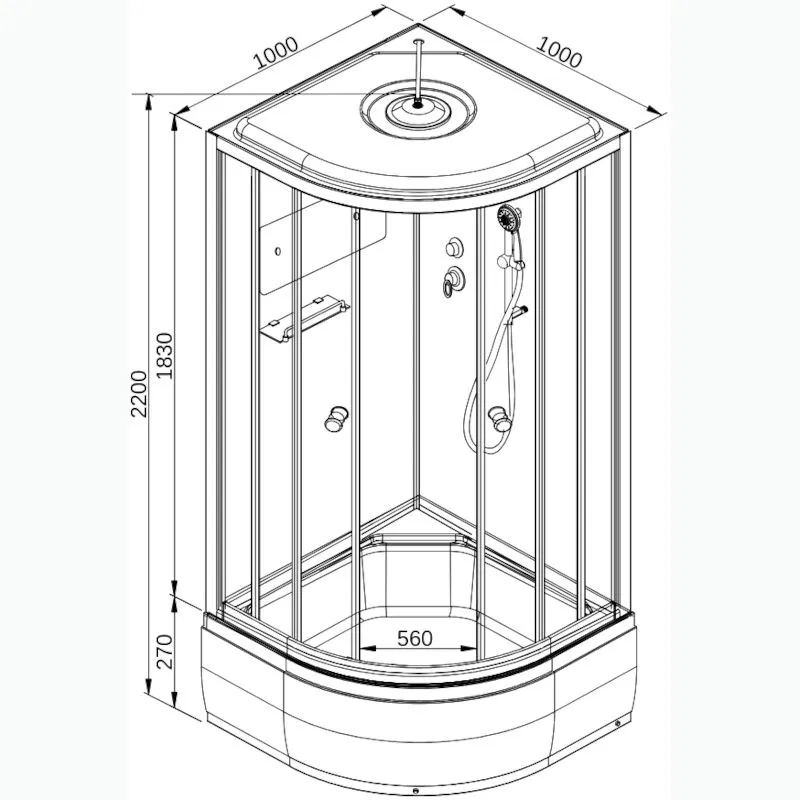 Душевая кабина DTO D D271SEL 100x100x220 см, с электрикой