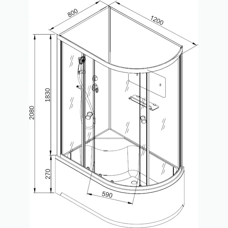 Душевая кабина DTO D D272L 120x80x208 см, левая, без крыши