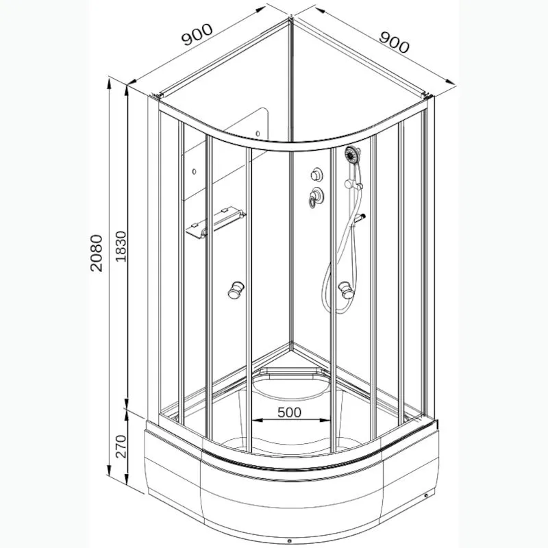 Душевая кабина DTO D D279 90x90x208 см, без крыши