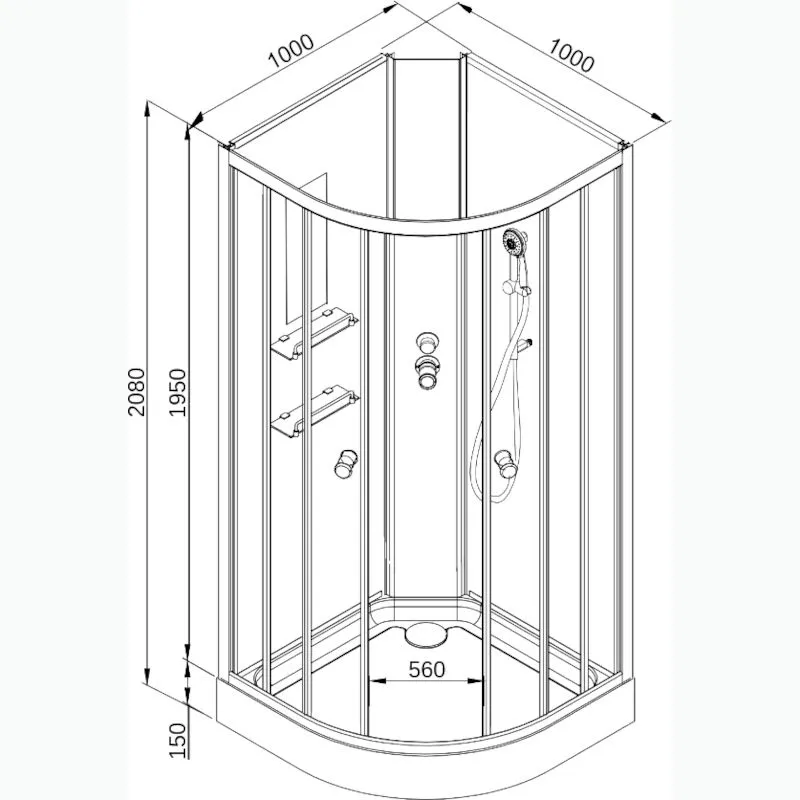 Душевая кабина DTO EM EM1510NLED+GM 100x100x208 см, без крыши, с гидромассажем и LED подсветкой