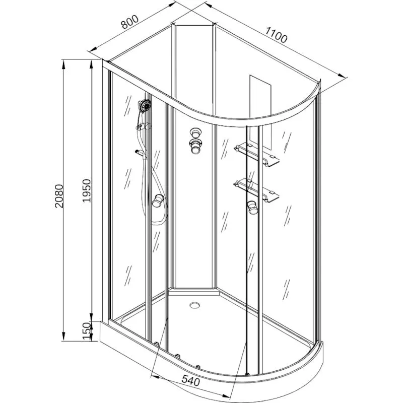 Душевая кабина DTO EM EM1511LNGM 110x80x208 см, левая, без крыши, с гидромассажем