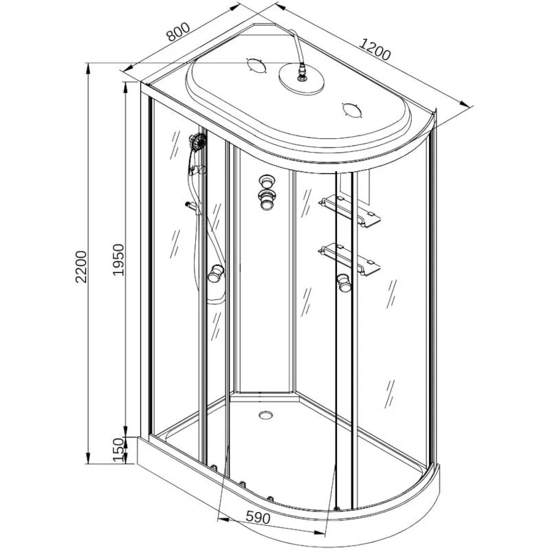 Душевая кабина DTO EM EM1512LEL 120x80x220 см, левая, с электрикой