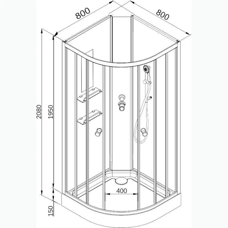 Душевая кабина DTO EM EM1580NLED 80x80x208 см, без крыши, с LED подсветкой