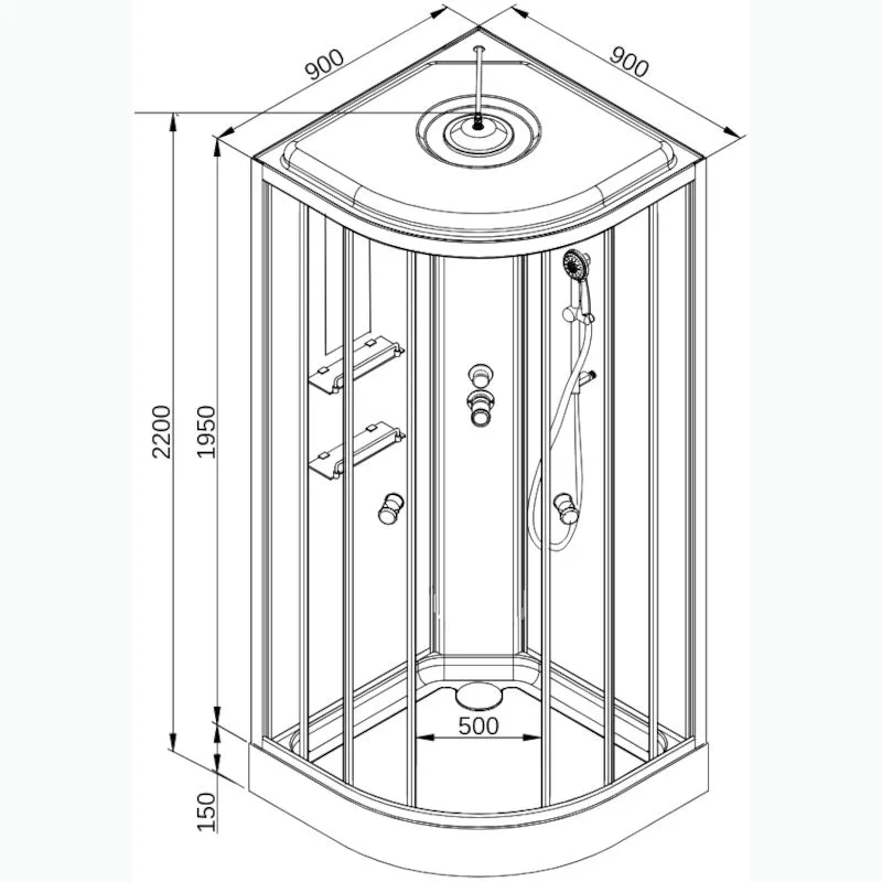Душевая кабина DTO EM EM1590GM 90x90x220 см, с гидромассажем