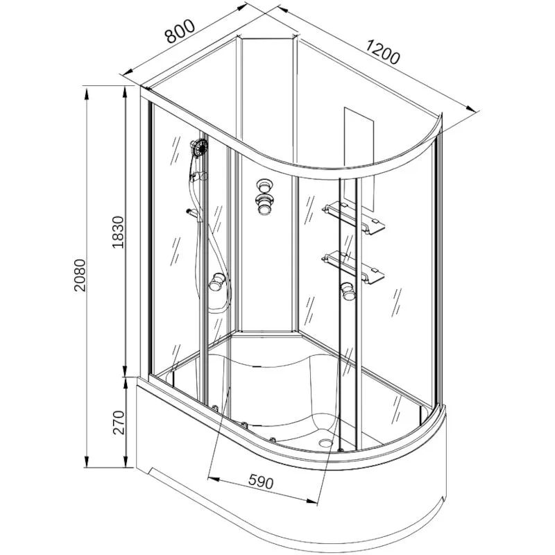 Душевая кабина DTO EM EM2712RNLED+GM 120x80x208 см, правая, без крыши, с гидромассажем и LED подсветкой