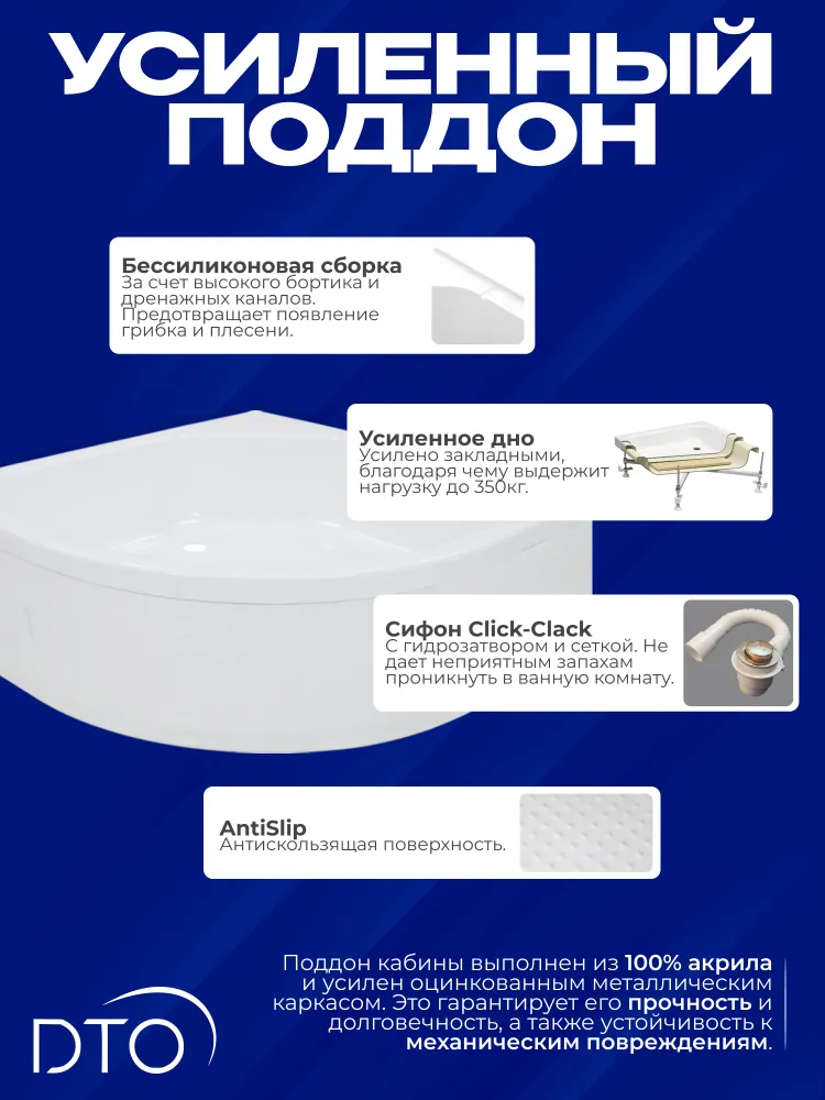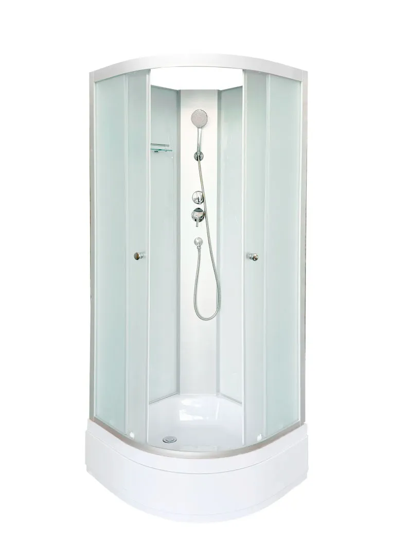 - Цвет поддона: белый. Гармонично сочетается с общим дизайном кабины.