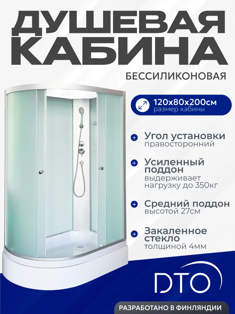 Душевая кабина DTO LM LM720RN 120x80x200 см, правая, без крыши