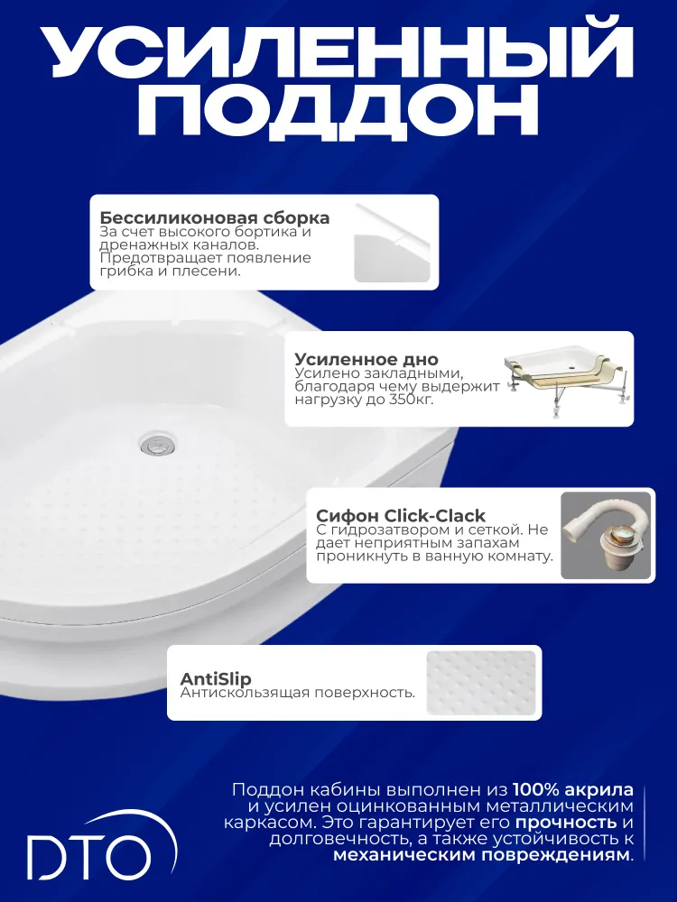 - Цвет поддона: белый. Гармонично сочетается с общим дизайном кабины.