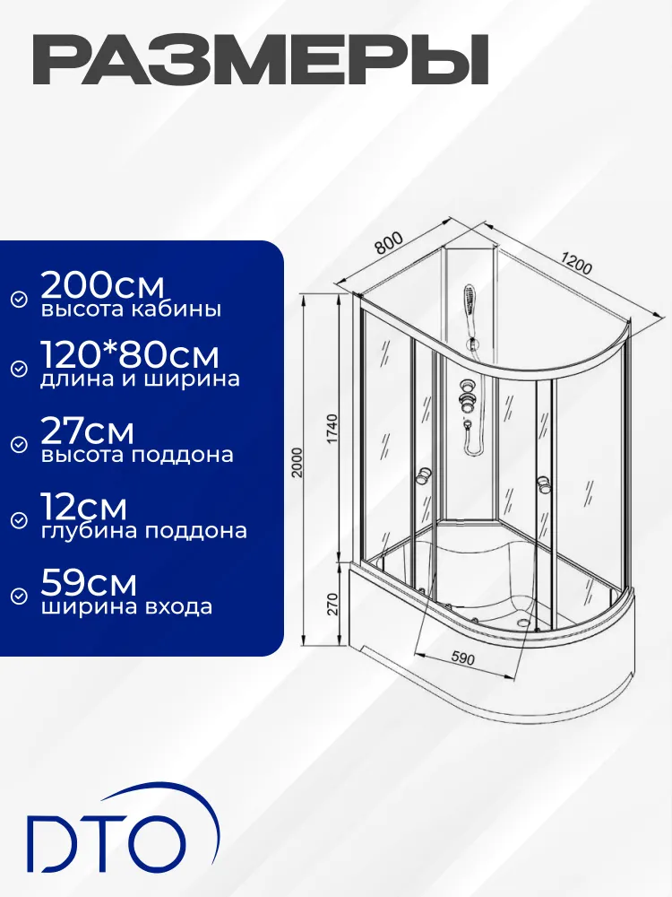 - Габариты (ШхГ): 120x80. Благодаря компактным размерам, кабина легко впишется даже в небольшие помещения.