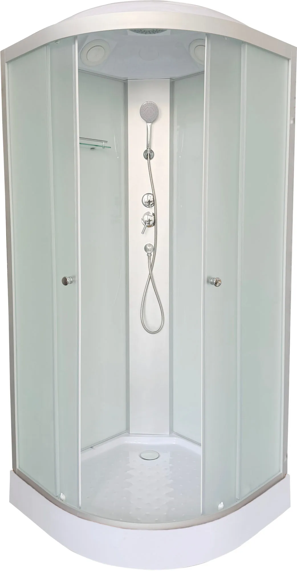 - Цвет поддона: белый. Гармонично сочетается с общим дизайном кабины.