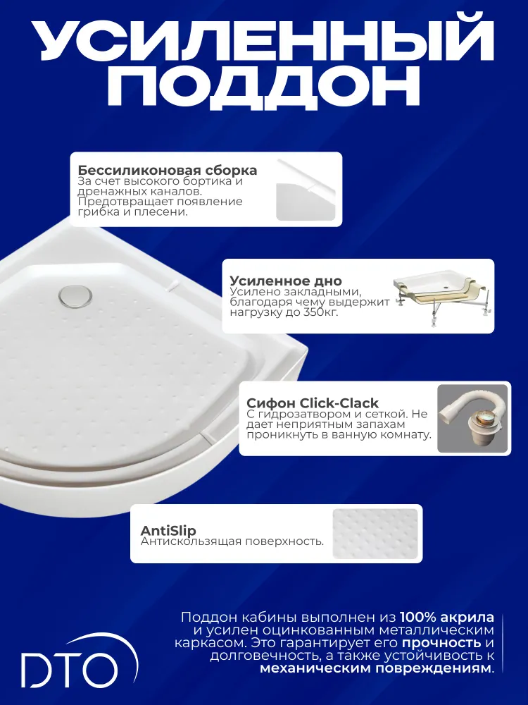 - Цвет поддона: белый. Гармонично сочетается с общим дизайном кабины.