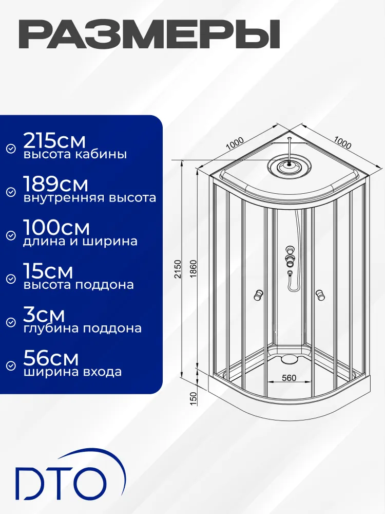 Душевая кабина DTO LM LM901GM+EL 100x100x215 см, с гидромассажем и электрикой