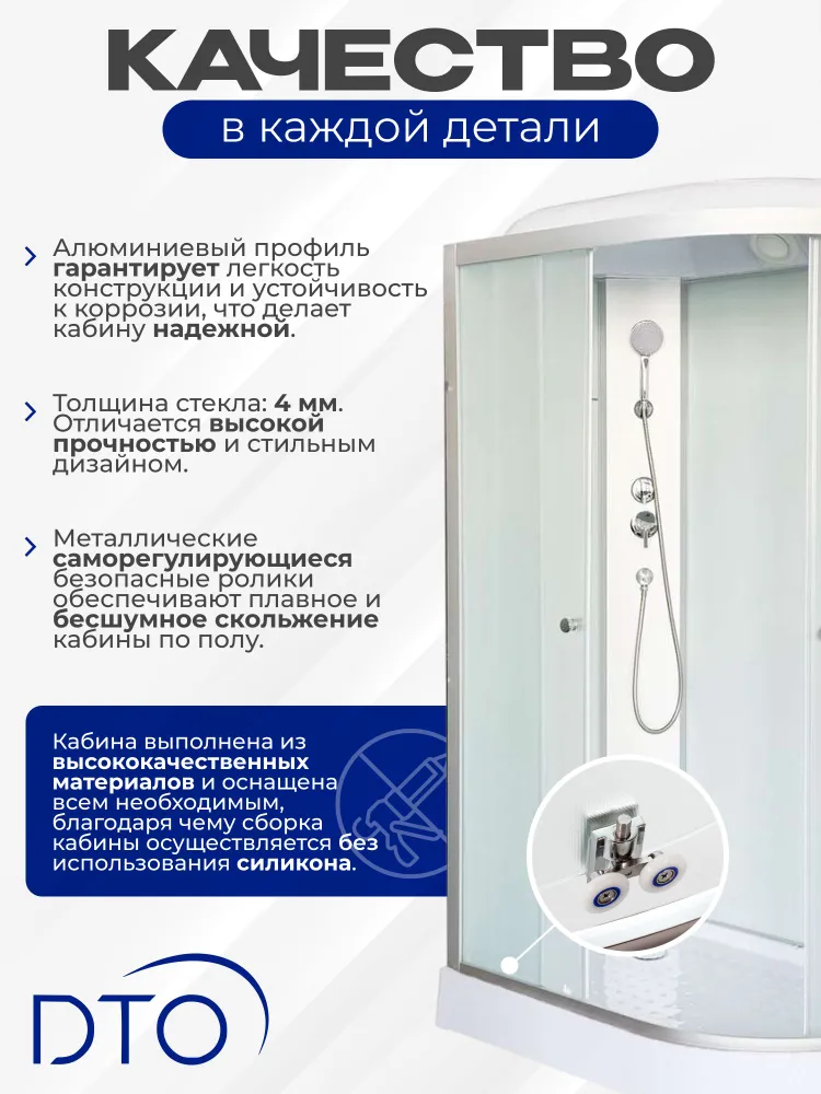 - Низкий поддон делает кабину комфортной для людей любого возраста и добавляет интерьеру легкости.