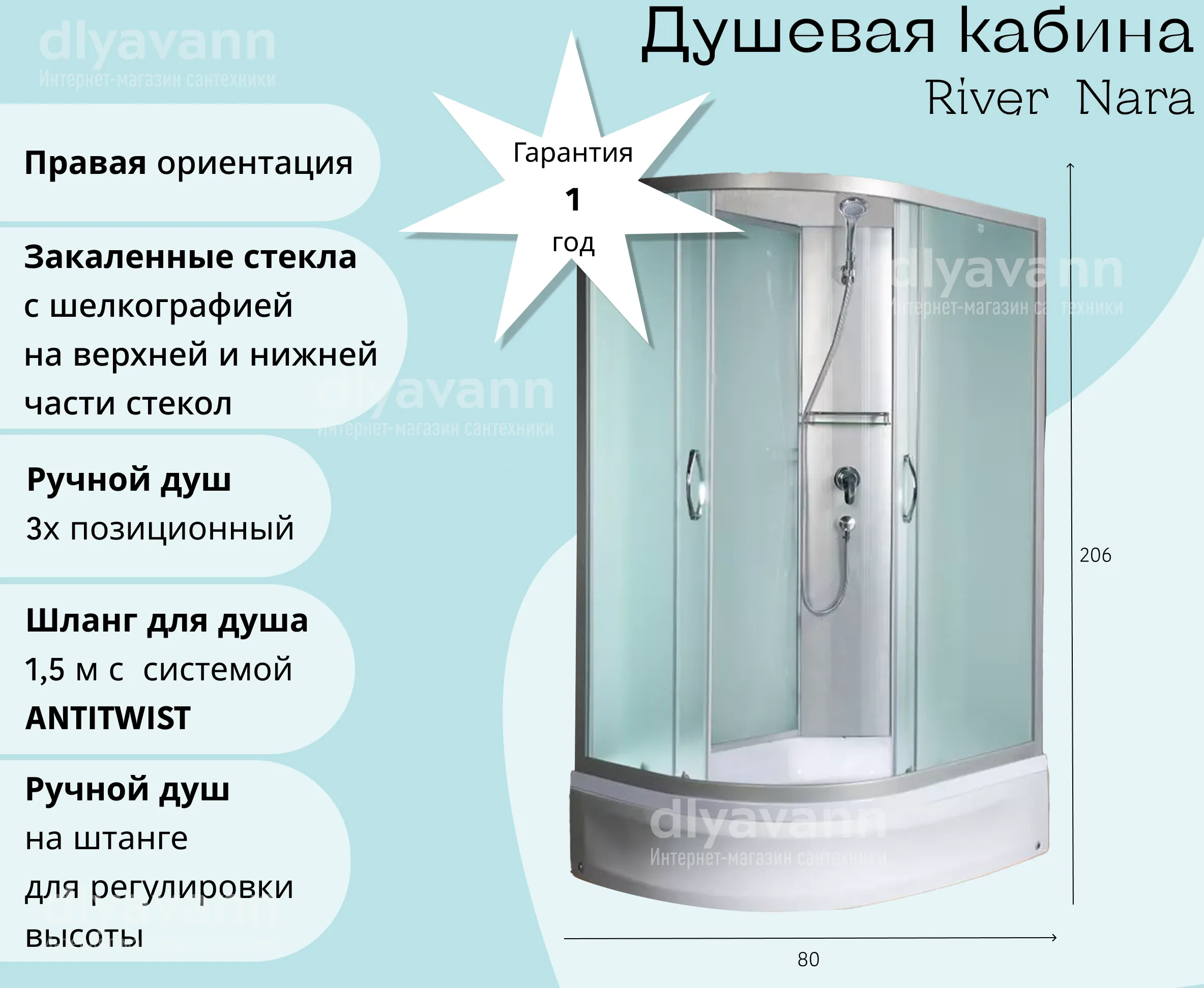 Душевая кабина River Nara 90/80/24 MT R 90х80 правая, без купола