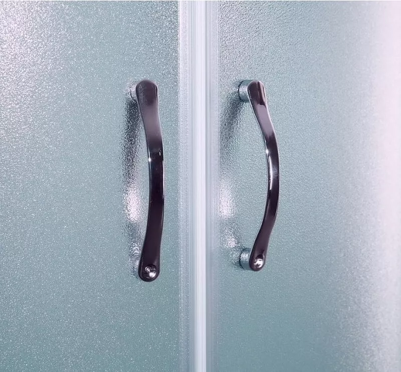 Душевая кабина с глубоким акриловым поддоном на усиленном металлическом каркасе, с раздвижными дверцами на саморегулирующихся роликах. Дверцы с металлическими ручками.