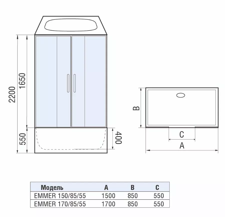 Душевая кабина Welt Wasser Emmer 150/85/55-2 150х85