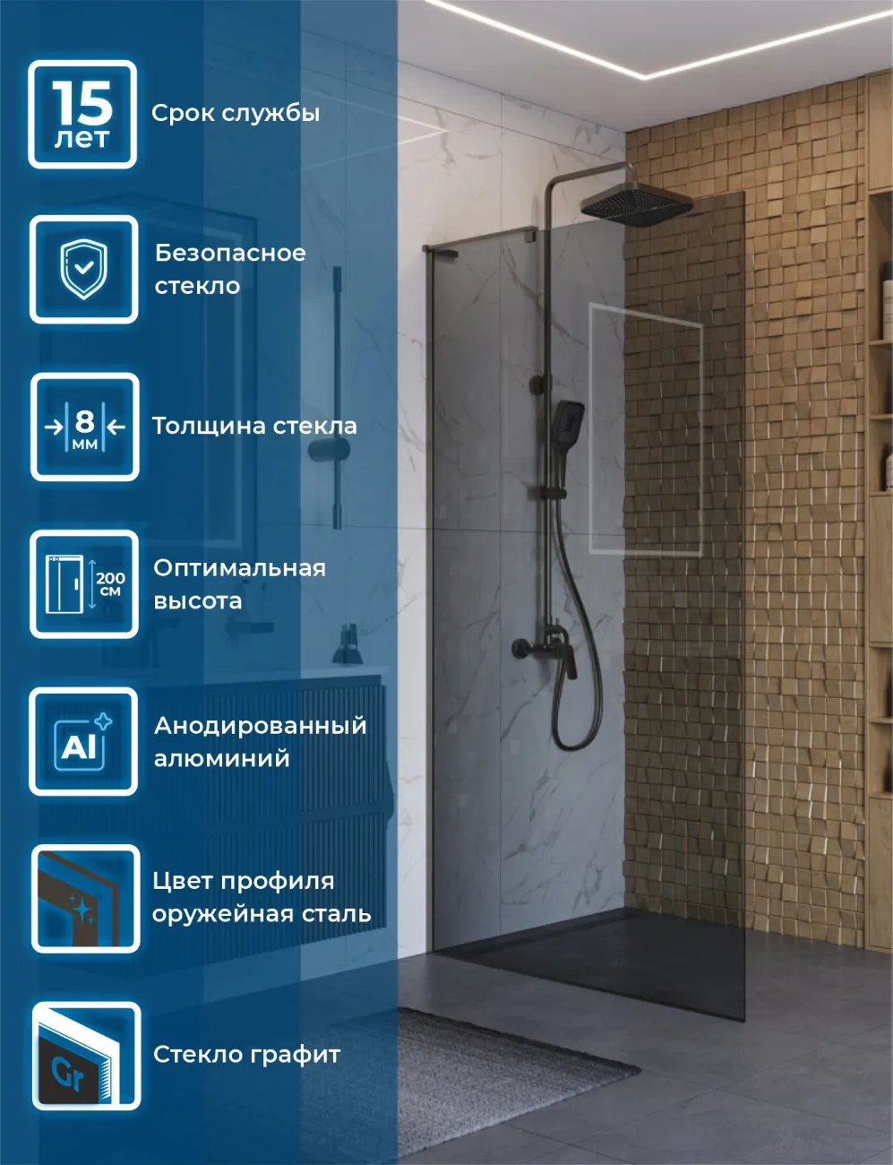 Душевая перегородка BelBagno Uno UNO-L-1-TB-80-GR-GM 80х200 см, профиль оружейная сталь/стекло тонированное