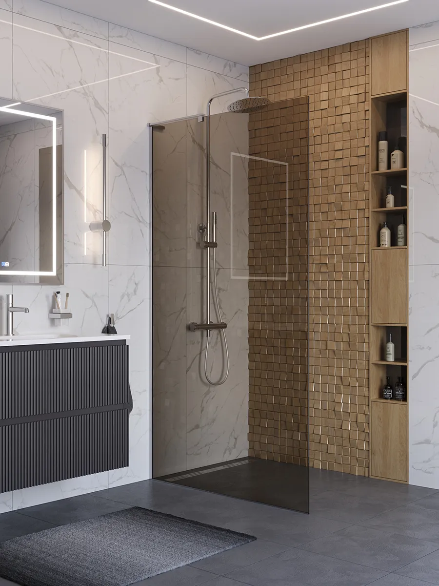 Душевая перегородка BelBagno Uno UNO-L-1-TB-90-BR-Cr 90х200 см, профиль хром/стекло тонированное