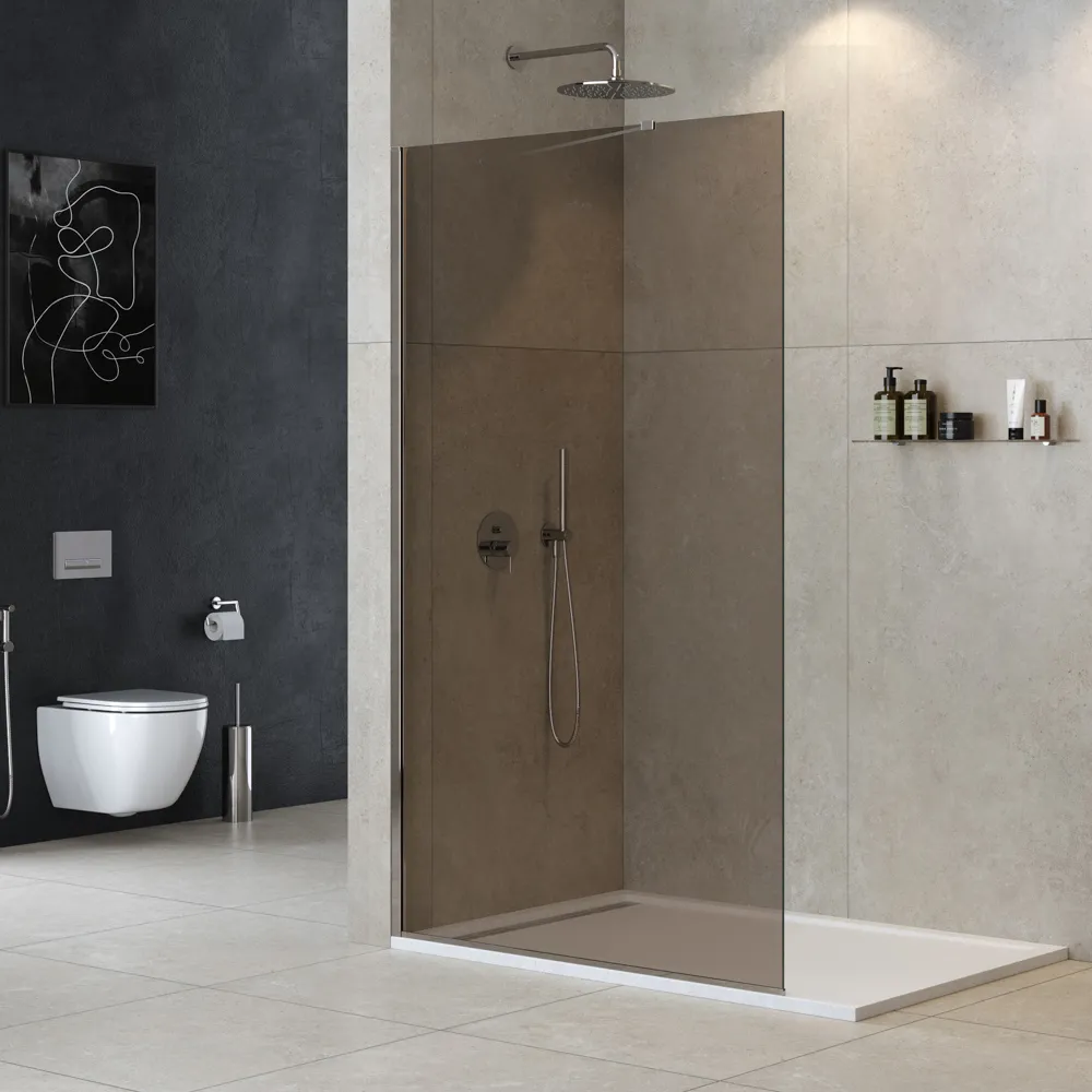 - Исполнения полотна перегородки: тонированное (бронза) закаленное стекло, толщиной 8 мм.