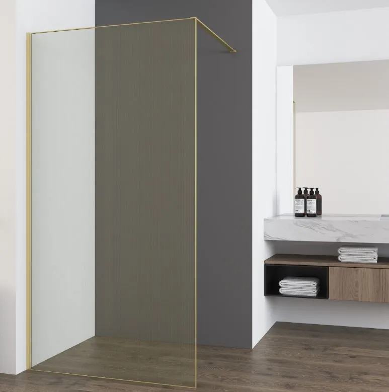Душевая перегородка Vincea Walk-In VSW-7HS100GWG 100x200 см, профиль брашированное золото/стекло с золотыми нитями