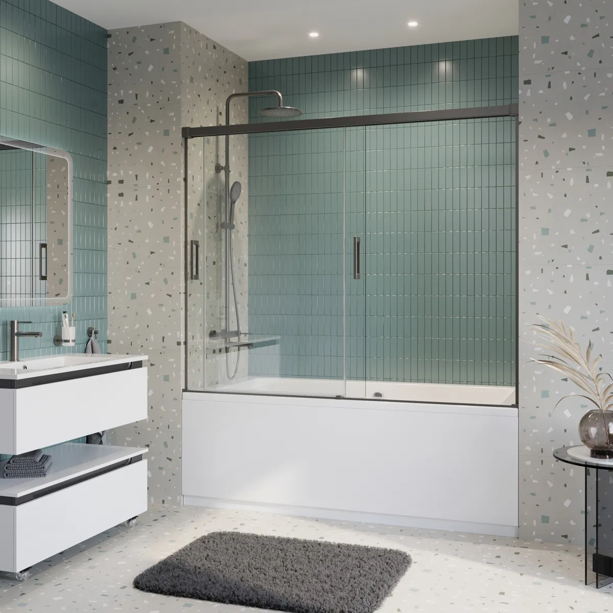 Душевая шторка Cezares Tandem-Soft 180 см, выдвижная, профиль оружейная сталь/стекло прозрачное