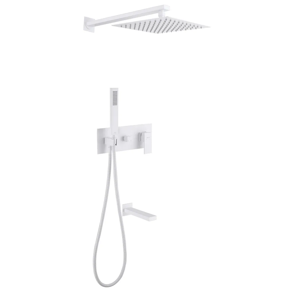 Душевая система Abber Daheim встраиваемая, с изливом, белая матовая