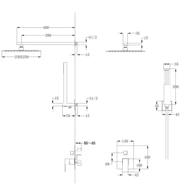- Размер верхнего душа (ШхД): 23х55.5 см.