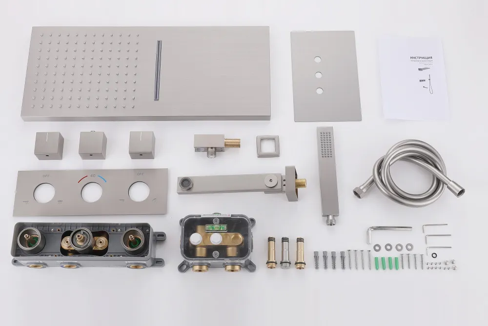 Комплектация: | излив , верхний душ , лейка , держатель , смеситель , термостат , шланг |