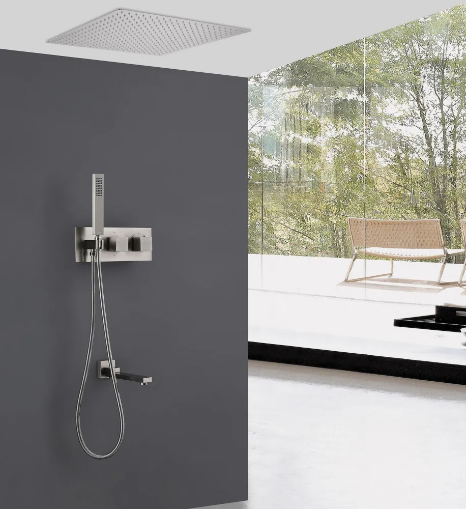 Душевая система Abber Daheim AF8254SP встраиваемая термостатическая, с изливом, сатин